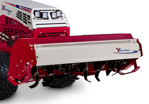 The KL480 Tiller is designed for easy preparation of gardens and yards. This power-driven front-end attachment allows the operator to easily monitor the Tiller's performance. Designed with the Ventrac Mount System, the Tiller can be attached in a minute or less and comes with a stand for storing the Tiller when not in use.